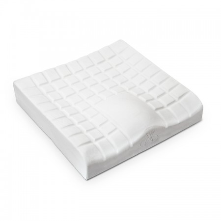 Almofada antiescaras de espuma viscoelástica injetada de alta densidade com excelentes "memória de forma" e propriedades de design anatómico, sendo muito eficaz na distribuição do peso do usuário, evitando pressões excessivas, alcançando uma estabilidade pélvica adequada. Possui uma grande capacidade de envolver a superfície do corpo, o que aumenta a área de contato entre a almofada e o corpo e absorve o impacto das cargas.