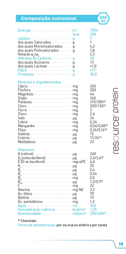 RESOURCE PROTEIN é um suplemento oral em formato 200ml, para a gestão nutricional de indivíduos com necessidades proteicas aumentadas e/ou patologias que levam à desnutrição.