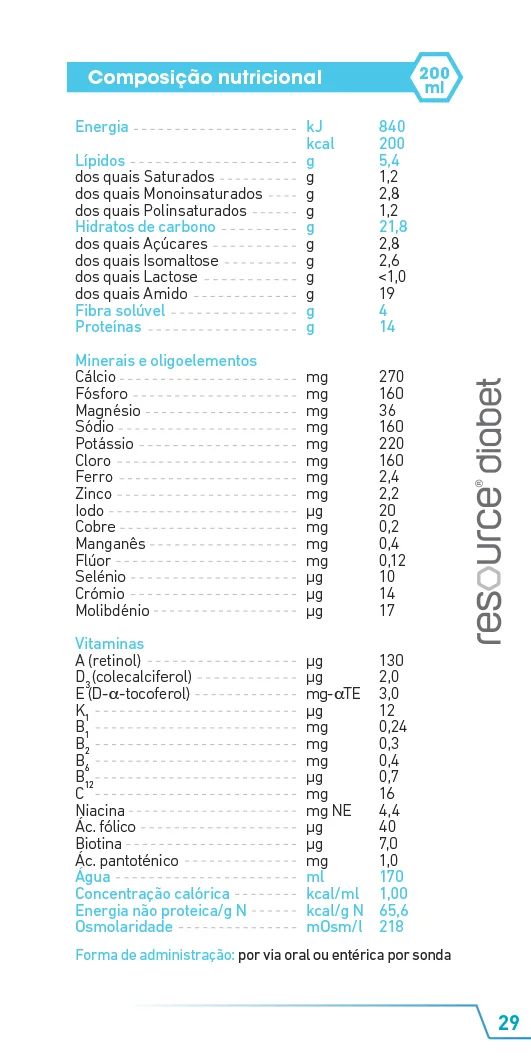 RESOURCE Diabet oferece uma dieta completa específica para satisfazer as necessidades nutricionais de todos os indivíduos diabéticos desnutridos ou em risco de desnutrição: